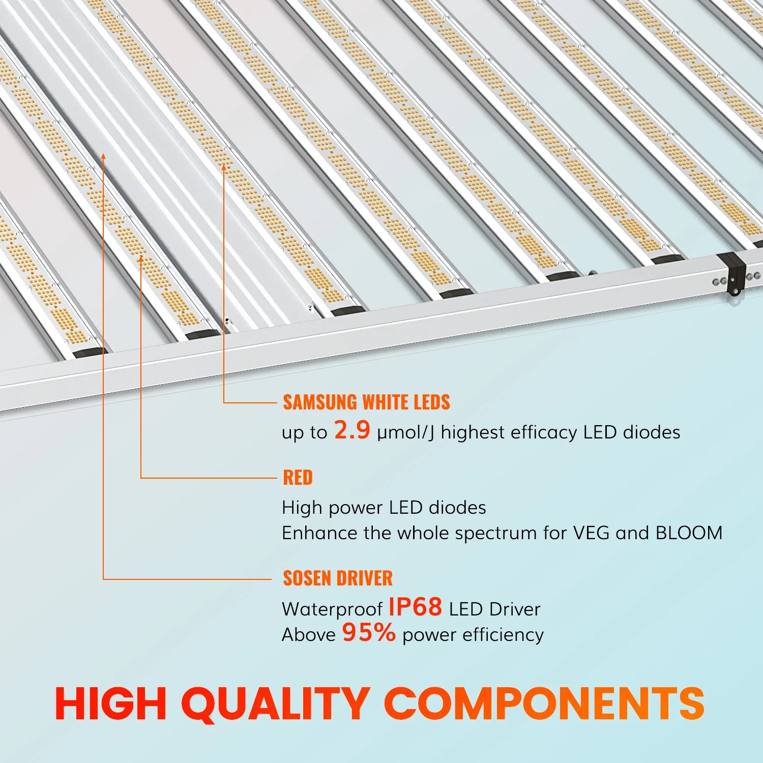 - Light Source: Samsung (full spectrum white LED + 660nm)